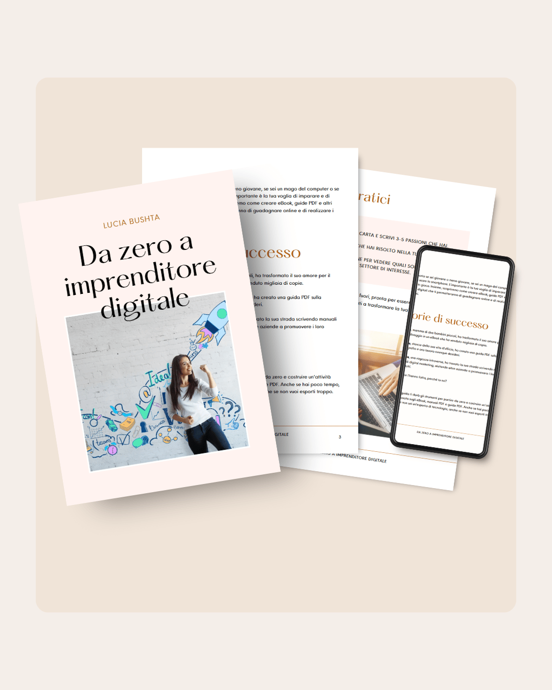 è la guida che fa per te! Ti prenderò per mano e ti guiderò passo dopo passo nella creazione e vendita di eBook, guide PDF e manuali PDF.